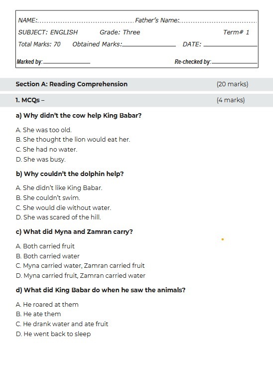 English Grade 3 Term 1