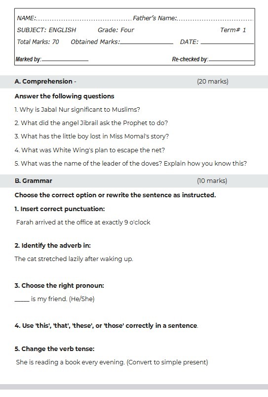 English Grade 4 Term 1